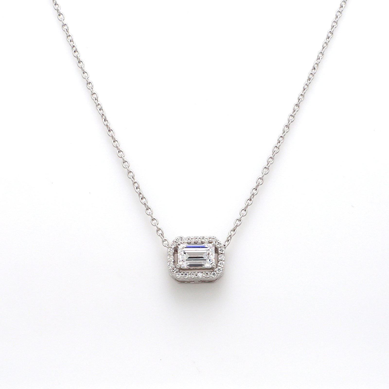 Nirelle White Emerald Pendant – Classic emerald-cut design in a luminous white tone, adding refined elegance to any look.